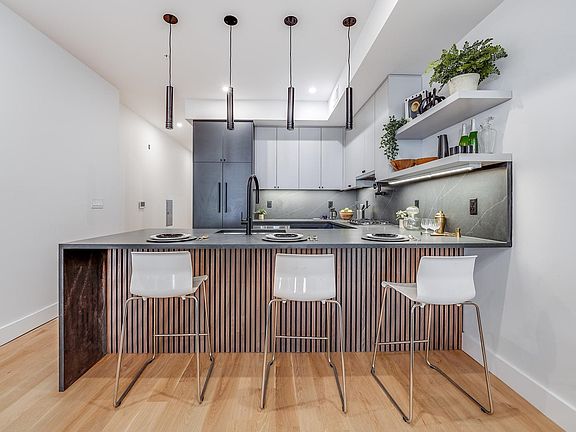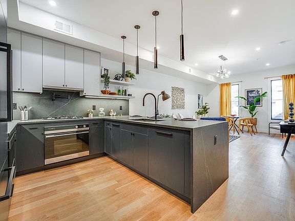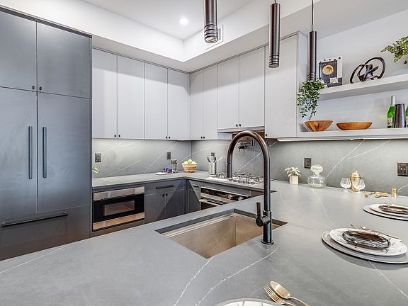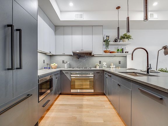 Elevate your standard of living in prestigious downtown Jersey City with this brand new home tailored to modern luxury living. This contemporary residence boasts a generous two-bedroom layout, ultra-luxury finishes and two direct access points to the beautiful backyard space. Backyard is split in 1/2 between units 1 & 2. Indulge in the captivating design with finishes like wide plank white oak flooring and carefully curated lighting throughout. Kitchens designed by Luxor Kitchens showcase elegant Soapstone Metropolis® concrete-finish quartz counters in Smoked Pearl, Fisher & Paykel stainless appliances, Tafisa custom cabinetry with under lighting and walnut wood panel accents. Ultra-stylish bathrooms continue with the dark smokey pearl notes in floor to ceiling tile, and include soaker tub, glass shower with custom niche, matte black fixtures and beautiful bamboo accents. Step through the extravagant walk-through closet in the primary ensuite, or allow laundry to be a leisure with the LG ThinQ® washer and dryer in champagne. Beyond the home, discover the allure of the downtown Jersey City neighborhood, a thriving urban haven boasting unparalleled restaurants, cafés, bars, and shops. Iconic Hamilton Park is just one block away with farmers markets, playground and splash pad, dog walking, basketball courts and lovely landscaping. Nearby Newark Avenue provides a pedestrian walkway filled with endless shops and eateries, while the Grove Street PATH provides swift access to the heart of NYC.