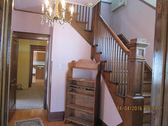 Tasteful blend of vintage and modern: vintage features lots of maple floors and original woodwork, crown molding and chair rail touches, 4 leaded glass windows, 4 crystal chandeliers and tin ceiling in kitchen (from the old Scott's Music store). Modern features of custom kitchen cabinets, striking and large master bedroom w/ gas fireplace,