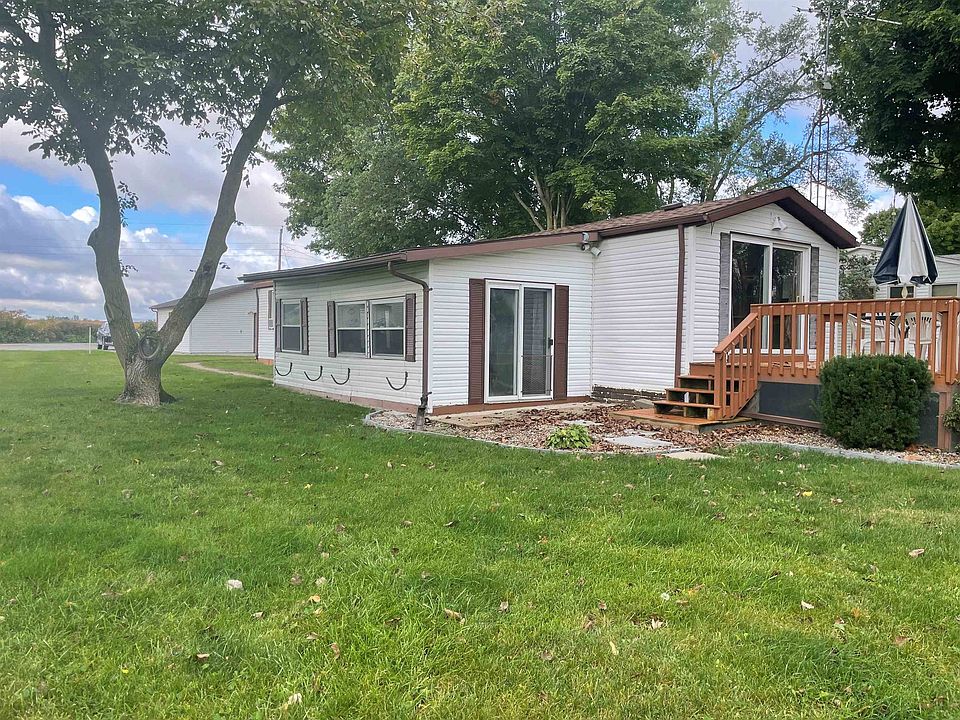 2 bedroom 1 ½ bath mobile home on Barton Lake with 70 feet of channel frontage. Enjoy the water views from the 12x12 deck or the 11x11 patio area. Easy maintenance aluminum dock stays in all year. 2 car detached garage and large parking area for all those guest that come to the lake to visit you. The level lot is great for playing yard games or sitting around the fire pit. New furnace just installed to make this a year-round place, even added heat to the enclosed porch for additional living space. Home comes partially furnished and is move in ready. Currently set up to sleep 7 people. Check this one out before it’s gone