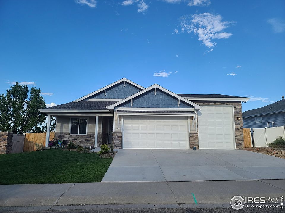 Offering credit toward closing cost. Nice ranch style home built in 2019. Dark hardwood flooring white trim. 95% eff. Furnace. Added Air Filter, system. High efficiency, triple pane windows. Added Water filter system. Granite Counters. Added security Cameras. Added Class 4 Hail Resistant Shingles. Sprinkler system. Large 37ft RV garage for the third garage. It has an open stair case to 3/4 finished garden level basement with a large family room! Bright and light appearing like a full walk-out. Nice attached deck.