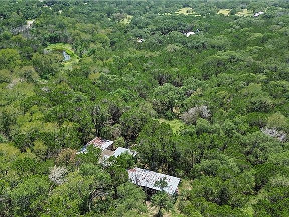 Scenic solitude meets city convenience in the heart of the Hill Country! This 12.027 acre parcel with all utilities, located just 15 minutes from Texas State University and I-35, has limitless potential as a hunter's retreat, event venue, "glampground," tiny home community or whatever you can dream it into being! The front of the property features two entrances that lead to the crown jewel: the rustic, hand-built stone cabin. This unique structure incorporates granite, petrified wood, natural crystals, fossils and stones sourced from throughout Texas. Its two buildings connected by a breezeway feature stone fireplaces, a vintage Franklin heating stove, window AC, full bathroom with a new freestanding tub and full kitchen. Spend days exploring the native flora and fauna and evenings soaking up the stars from the built-in outdoor seating or rooftop deck. Past the cabin, the lot slopes down towards dry creek and shares a small pond with the neighboring lot. Included with the property are multiple sheds, a small screened-in pavilion and a foundation for a mobile home. This special property truly must be seen to be understood. Escape the noise and bustle of the city at your own Hill Country haven while keeping its comforts a short drive away!