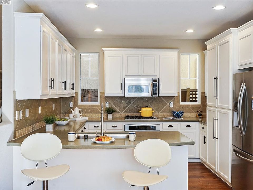 Contemporary, Charming & Sunny 3 bedrm home on a corner lot in Bayport! Spacious living room and formal dining room. Kitchen opens up to family room & nook. Beautiful wood floors on main level. Updated kitchen with tile backsplash. Balcony off master bedroom with large walk-in closet and elegant master bath with tub and stall shower. Gas fireplace, laundry room upstairs with sink. Good sized courtyd with pavers. Backyard with lawn and mature greens. Conveniently located nearby to Alameda College, Alameda Point, the shopping/dining at Alameda Landing & offers easy access to BART, SF Ferry & Webster/Posey Tube.