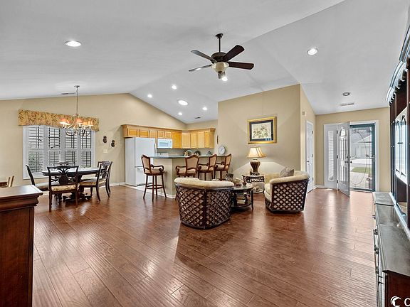 Charming 3BR-2BR home with a delightful Carolina Room in the gated community Myrtle Beach Yacht & Golf Club. This lovely property offers a unique and inviting atmosphere for comfortable living. The open floor plan seamlessly connects the living room, dining area, and kitchen, providing an ideal layout for both everyday living and entertaining. The Carolina Room, a versatile and sunlit space, offers a perfect spot for relaxation or can be utilized as an office or hobby room. Beautiful LVP flooring is carried through the foyer, living/dining room & Carolina room. The kitchen features a breakfast bar, solid surface countertops, plenty of workspace & a desk/storage area off the kitchen. The master bedroom has a walk-in closet, tray ceiling and is a peaceful retreat. Also boasting a private en-suite bathroom with a soaking tub, walk in shower and double vanity. Off the back of this home is a wraparound screened/covered paver patio the perfect place to add a hot tub! The private back yard has a nature view. The paver driveway has been widened for additional parking. Amenities include a community pool, hot tub, tennis courts, picnic area & community activities. RV & Boat parking are available. Myrtle Beach Golf & Yacht is located in the awarding wining St James School District, close to a variety of restaurants, plenty of shopping, championship golf courses & only a 15-minute drive to the beach!