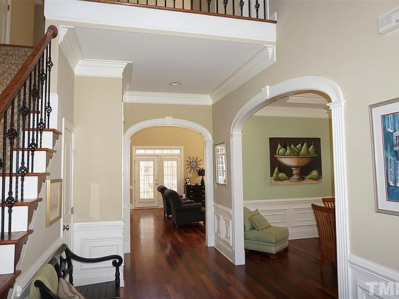 Beautiful Custom built home by award winning Wardson Construction. Hard to beat this location! Minutes to SAS, MetLife & RDU. Immaculate condition. Grand foyer, extensive molding & wonderful details. Gourmet kitchen with granite countertops, Dacor appliances, large center island, gas stove & warming tray. Spacious family room w built-ins. 1st floor master with fireplace. 3rd floor Rec room is awesome. New carpet. Screen porch adjoins patio w built in grilling station. 3 car garage. Irrigation system.
