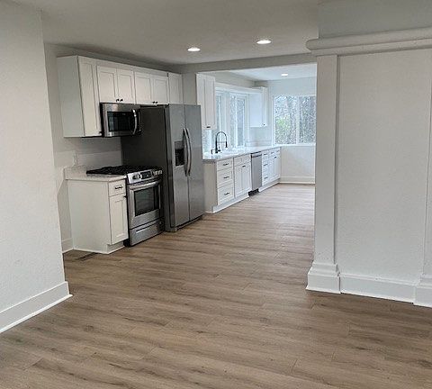 Newly renovated home with new roof, LVP floors, new bathrooms with tile floors. fenced yard, New HVAC downstairs.