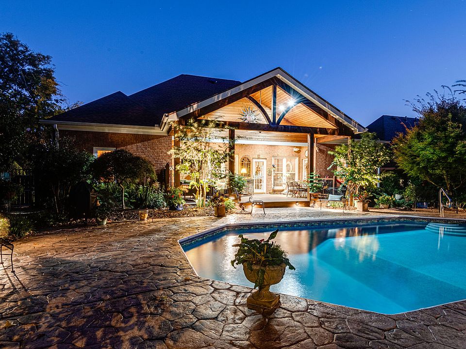 Custom Built One Level Living in Gated Community w/Gorgeous Resort-Like Backyard * Tall Ceilings * Open Floor Plan * Large Family Room w/ Fireplace & 12' Ceilings is open to the Breakfast Room & Kitchen w/glass tile backsplash * Split Bedroom Floor Plan * Private Primary Suite w/ Access to Covered Back Porch * Gorgeous Renovated Shower in Primary Bathroom w/ Rain Head showerhead, Body Jets & Bench Seating * Large Walk-In Closet w/Custom Built-Ins * Large Rec Room w/Bose Surround Sound Speakers, Powder Room & Access to Walk-up Attic Storage * Resort-Like Backyard w/Vaulted Covered Back Porch w/Wood Planked Ceiling, Bose Speakers * 7' In-Ground Pool, Lush Landscaping & Beautiful Lighting * New Roof 2020 * New Gas Furnace 2020 * Hardwood Floors were refinished in 2018 * New Gas Logs 2021