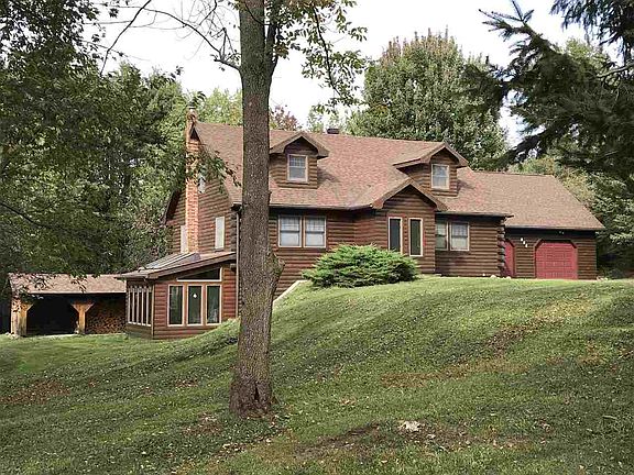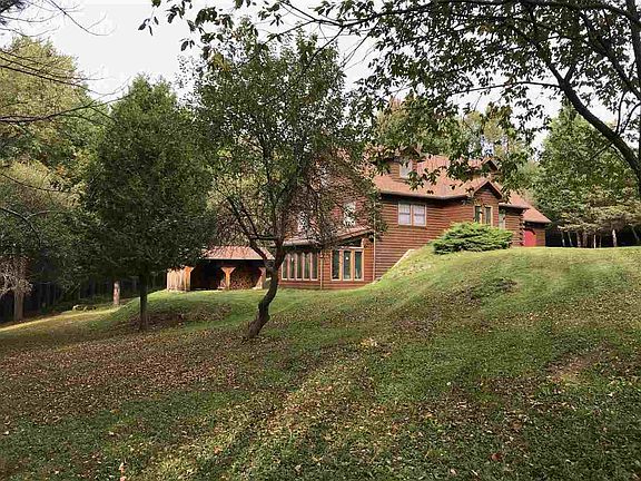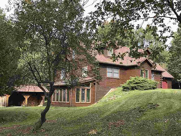 This beautifully-maintained country log home convenient to Potsdam and Canton is set on nearly 8 rolling acres. The workmanship is apparent throughout, and the home features a large living room with built-in bookshelves, polished hardwood floors, and large windows; a spacious dining room open to the kitchen; and master bedroom with full bath on the first floor. Upstairs, there are two bedrooms and a shared full bath. In the finished lower, walk-out level, a family room with wood stove, bedroom/office/exercise room, bathroom with shower, workroom, and utility area, plus a 3-season sunroom overlooking the yard provide lots living space. Over the attached 2-car garage you'll find plentiful storage and a built-in sauna. Move-in ready, this home is a must-see!