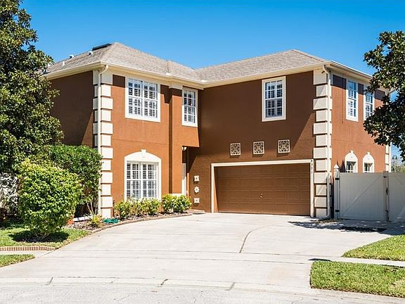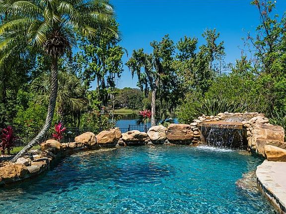 AT LAST YOUR DREAM HOME IS A REALITY with this impressive two-story 6 bedroom/4.5 bathroom lakefront home. The expansive grounds CAPTURE THE BEST IN FLORIDA LAKEFRONT LIVING with A CUSTOM LAGOON RESORT STYLE POOL WITH TWO WATERFALLS. The main level boasts a SPACIOUS formal living room, formal dining room, family room, den/study and a master suite. GOURMET CHEF KITCHEN with 42" cabinets, Corian countertops, walk-in pantry, breakfast bar, and eat-in space will satisfy the most discerning of cooks. Upstairs there is a large bonus room with built-in media center, 3 bedrooms, a den/study, and a SECOND MASTER SUITE. The OVER-SIZED master bath is equipped with a spa tub and separate shower. The home has an abundance of natural light while capturing the STUNNING WATER VIEWS. A WEALTH OF UNIQUE FINISHES are seen throughout the home from a MURPHY BED, PLANTATION SHUTTERS to CROWN MOLDING and LED lights, come take a look! The fenced grounds take full advantage of the lakefront setting with an OPEN-AIR POOL, AMPLE SPACE FOR LOUNGING IN THE SUN ON LAKESIDE DECK WITH A BAR SET and CHAIRS. Completing YOUR ENTERTAINMENT PARADISE is a covered lanai large with large HOT SPRINGS BRAND HOT TUB and HUGE BBQ GRILL.