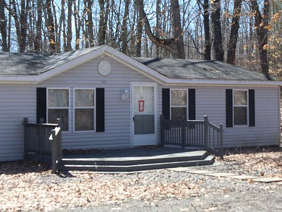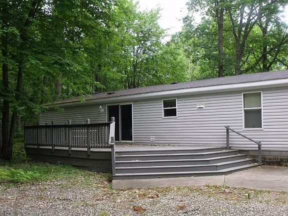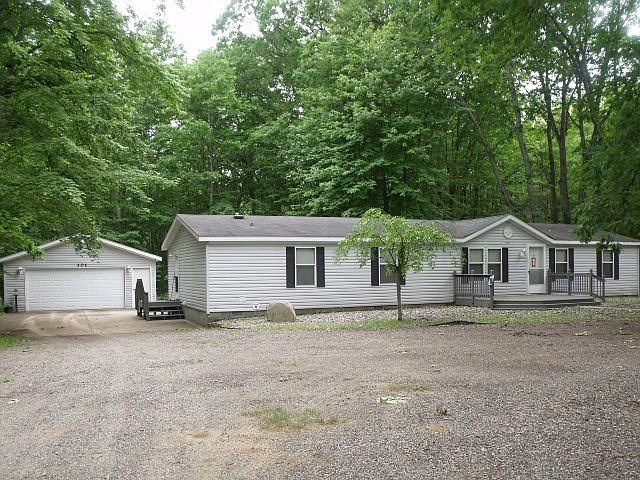 Looking for "privacy" yet not far from activities, then look no further. This manufactured home shows definite pride of ownership. Nestled on one acre of mostly wooded property features large open living room/dining room. Electric fireplace in living room for added enjoyment. Great kitchen area with adjoining family room. Master bedroom has private master bath with garden tub and oversized walk-in shower. Large decks both front and rear for enjoying the out of doors. Two car detached garage. This one is just waiting for you! Adjacent two lots possibly available.