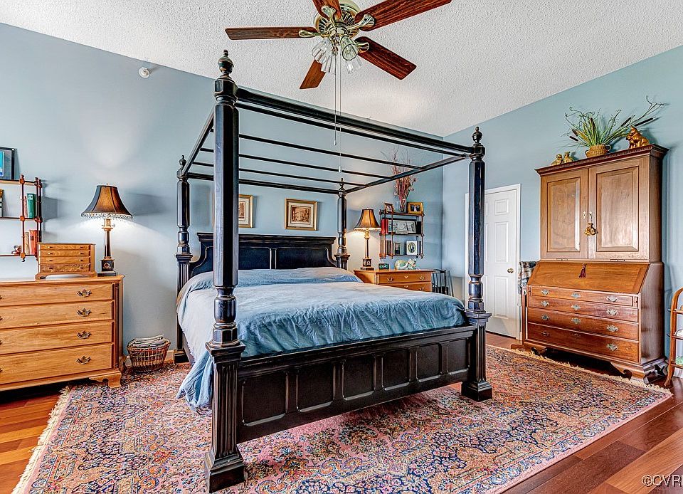 Fabulous Million Dollar views from this Penthouse condo in Anchor Point along Appomattox River. One of the largest unit in building with almost 2,000 sq. ft., 3 large bedrooms, 2.5 baths. Owners are retired contractors and have done numerous upgrades since purchasing like: Granite in kitchen, Brazilian Cherry hardwood, custom pantry and bedroom closet shelving, sliding lower shelves in kitchen cabinets, stone surround for living room fireplace, newer sliding doors to balcony overlooking river, newer hvac and hot water heater. Anchor Point provides you luxurious lifestyle and convenience only 10 minutes to South Park Mall shopping, Ft. Lee/Gregg Adams, I-295 or I-95. Building amenities include first floor reservable community room for birthday parties/events, reservable guest bedroom on first floor floor., as well as equipped fitness room. Under building assigned parking and elevator make for easy access. Drink coffee on balcony in morning watching boats on river, or sip your wine watching stars come out. Lock the door and travel, unlock it when you come home.