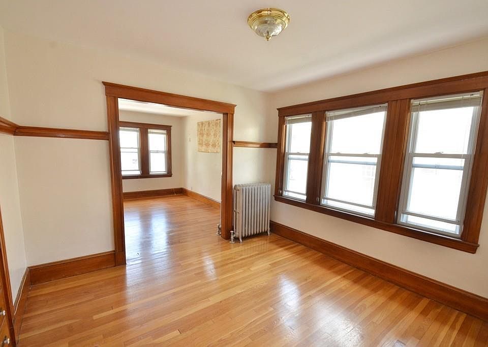 Nice first floor apartment for Sept 1. Clean, simple open living all on one level. Enter into spacious foyer with large coat closet and additional space for desk or bookshelf. Living room to the left leads to formal dining room with built in china cabinet. Eat in kitchen with dishwasher and gas stove. Washer and dryer hookups in kitchen. Can use existing dryer and bring your own washer. Beautiful refinished hardwood floors throughout. Newly painted. Parking available for one vehicle off street in large driveway. Can use shared yard. Front and back porches. Gas heat and steam radiators. Tenant pays utilities. No pets please. No smoking please.Close Washington St and only 1 block to all buses on Washington St. About 20 to Forest Hills Station or 10 minutes to Commuter Rail in Roslindale Village. Enjoy the shops, restaurants, farmers' market and concerts!