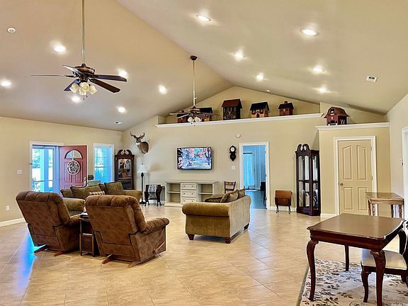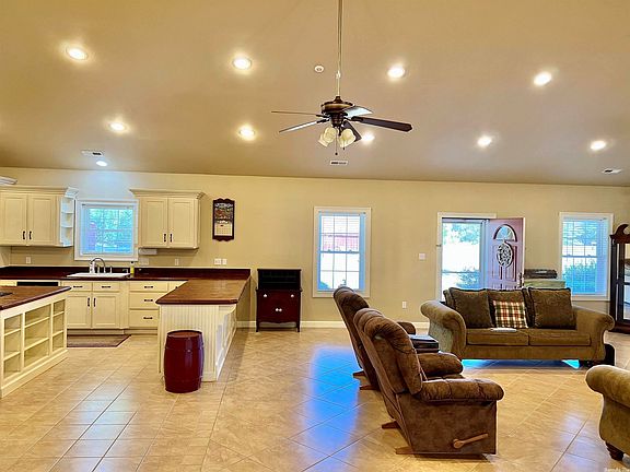 If you are looking for extra square footage in a home for those family gatherings, to host events or just to have the additional living space, this is the home for you! SPACIOUS and very well-maintained, this 3651 sq ft, 4 bedroom, 3.5 bath home sits on 8 acres of beautiful surroundings. Every room in the house is sizeable, featuring an extra living room/den, separate laundry room, very spacious primary bedroom, bathroom & walk-in closet. Gather the family and prepare your meals in the oversized kitchen with Shirestone countertops overlooking the living area. This property also features a large garage with ample parking area, as well as storage cabinets and work space. Very nice and clean safe/storm shelter accessible in the garage. In addition, a shop with covered parking and a beautiful red barn with RV storage and a loft used for event hosting is a highlight on this property. You will not be disappointed in this home and property!