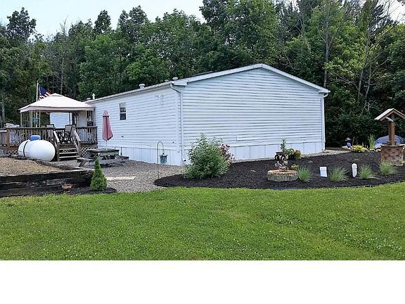 New carpeting and master bathroom now completely remodeled! 3 bed, 2 bath home on 2 acres in Hamburg school district with view of the Blue Mountains. New roof with skylights, new on-demand hot water heater, new 98% efficient propane furnace that includes a 500 gallon propane tank. Master bedroom has a master bath and a new walk in closet area. Outside, you have 2 sheds with electric, landscaped flower beds, an established garden area, fire pit in the wooded area, underground dog fence, kennel, and a large yard. Please note: Also excluded from the sale are: windmill and porch canopy. and, pellet stove, large workbench, wash-line and utility sink that are in large shed.