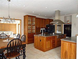 Fabulous Home with a view of Iron Masters Country Club. Vaulted cielings in living room with built in gas fireplace. Custom cherry kitchen with walk in pantry, cozy sun room with wood burner. Hardwood and tile floor throughout. Master bedroom with two walk in closets. Deck with hot tub off master bedroom.