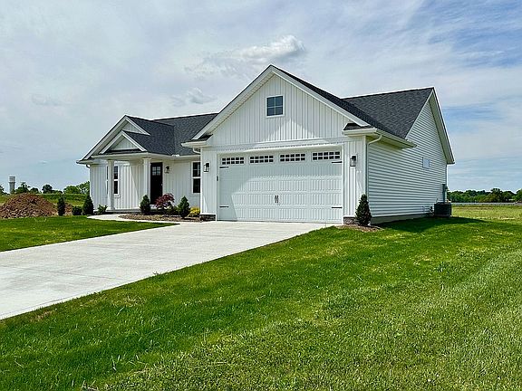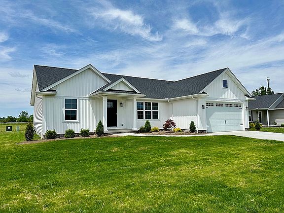 This beautiful new construction home by Schlabach Builders is completed and ready for you. It is a 1,417 sqft, 3bedroom/2 bath ranch house with an open concept that includes cathedral ceiling above the great room and dining room/ kitchen areas. The spacious kitchen has custom white cabinets by Schrocks of Walnut Creek, a pantry, an island and upgraded quartz countertops. Laundry/mudroom with laundry sink is located on the main floor off of the the 2-car garage with a 16’x8’ garage door. The master suite includes a walk-in closet, private bath, with linen closet, walk-in shower, and right height toilet. There are an additional 2 spacious bedrooms and another full bath with tub/shower combo and also includes a linen closet and right height toilet. The interior of this home is trimmed out in solid wood, white woodwork, and beautiful white craftsman style doors. The full basement has plumbing roughed in for a future bathroom. The exterior is finished with a concrete drive, sidewalk from the front porch to drive and a back concrete patio. The professional custom landscaping finishes off the exterior to help it stand out from other homes. Be sure to give us a call for a tour and answer any questions about this quality-built home.