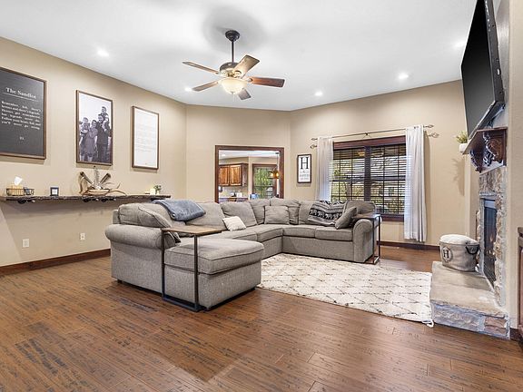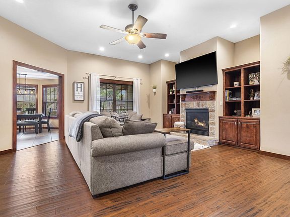 Immaculate and move-in ready, this 3 bedroom, 2 bath home in Nixa's Dogwood Estates offers comfort, style, and a smart layout. The spacious living room features a stunning stone fireplace perfectly centered between custom built-in cabinetry, ideal for cozy evenings and showcasing your favorite decor. The kitchen includes granite countertops, a pantry, and an updated sink, with a bright dining area bordered by windows that overlook the peaceful backyard. The oversized laundry room adds convenience with a sink, built-in cabinetry, and generous storage space. A split bedroom floorplan provides privacy, and the primary suite offers dual walk-in closets, a jetted tub, and a walk-in shower. Step outside to enjoy the covered patio and garden area, perfect for relaxing or entertaining through every season. With hardwood floors throughout, great curb appeal, and a two car attached garage, this one level home is ideal for families, first time buyers, or anyone looking to downsize without sacrificing comfort or quality.