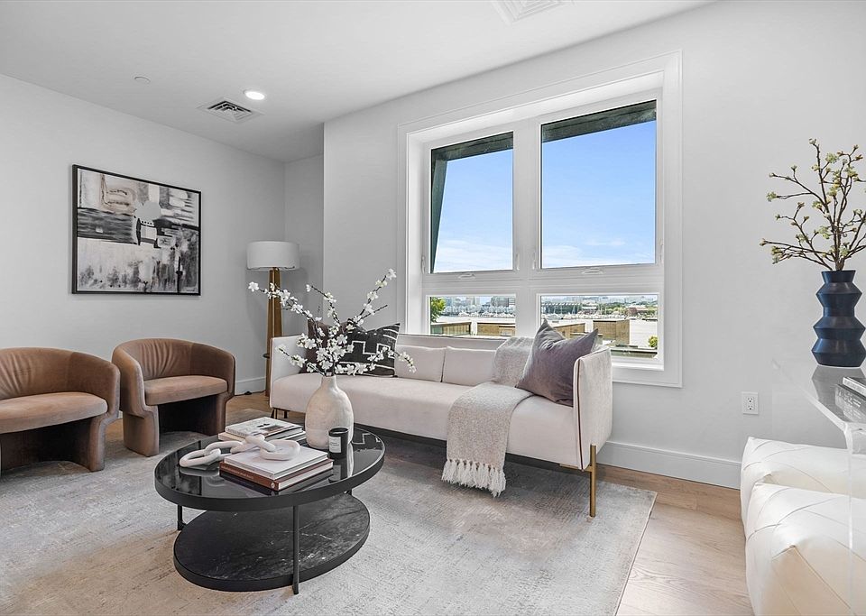 Waterfront living at its finest! Step into luxury with this new construction 2 Bed / 1.5 Bath condo in East Boston. Floor-to-ceiling windows bring abundant natural light and showcase stunning panoramic views of the Boston Harbor. The modern open layout is designed for both style and function, featuring sleek Metropolitan cabinetry, quartz countertops and full-slab quartz backsplashes. Engineered oak hardwood floors, high-end Bosch appliances plus the convenience of in-unit laundry. Take in more breathtaking views from the building's exclusive roof deck or purchase a private roof deck of your own. This residence includes one dedicated tandem stacker parking spot ($75.58/mo.) and access to Mira’s top-tier amenities: fitness center, club room, private meeting space, pet wash station, curated art gallery and roof deck with City Views. Located in the heart of East Boston’s vibrant neighborhood, just 0.5 miles to Maverick Square T Station with easy access to all major highways.