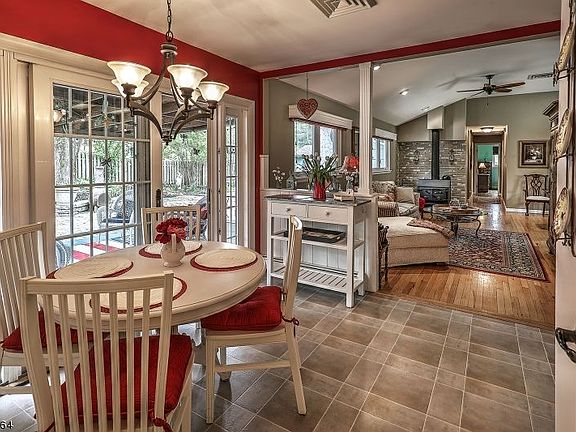 Lovely renovated ranch 4 BR 2 full & 2 half baths set on private 1.6 ac. lot with stream at front of property.Fully fenced rear yard with inground salt water pool, covered patio, gardens & pool house Beautifully maintained and upgraded home with open floor plan. On first floor, L-shaped galley-style kitchen opens to breakfast area and spacious living room w/wood burning stove and open dining room. Master bedroom with ensuite renovated bathroom w/new glass shower stall. 2 additional bedrooms with hall bath and 1 bedroom with ensuite powder room. Kitchen and bathrooms renovated with new fixtures.Gleaming hardwood floors throughout and custom moldings. Basement offers large rec room w/ brick wood burning fireplace, wet bar area, laundry room and powder room, w/door to 2 car garage. New AC 2017,