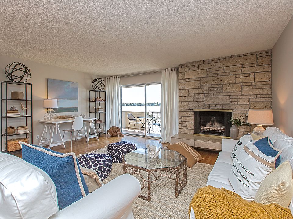 2 BR | 2 BA | 1260 SF | Beachfront | Swimming Pool Listed at $495,000 | HOA dues: $521/monthEnjoy coastal living with views of the San Francisco Bay, bird sanctuary & peek-a-boo views of the San Francisco skyline from this single-level condo on the beach.The kitchen greets you as you walk into the home, with it's rich kelly green tiled countertops & backsplash along with the freshly painted white cabinets and drawers with updated pulls. Appliances include a Kenmore refrigerator, Frigidaire dishwasher and a smooth top electric stovetop. A built in wall oven has ample storage cabinets above and below, in addition to a generous shelved pantry. The large sliding glass door, next to the eat-in breakfast nook, give the kitchen ample light plus a view of the courtyard and pool.The entertaining spaces of the home, finished with hardwood floors, benefit from an open floor plan, perfect for enjoying the views. The dining area easily accommodates a table with seating for six with a linen drum pendant overhead for soft lighting. The gorgeous stone fireplace anchors the living room and provides a generous hearth for a natural gathering spot. Next to the fireplace is the large sliding glass door that opens out to the private balcony overlooking the bay.This spacious waterfront patio extends the length of the unit, providing scenic outdoor living space with access from one of the bedrooms as well as the living room. The patio can easily be separated into two spaces - a sunny and intimate spot for cozy seating outside of the bedroom while still offering plenty of room for a bistro table off of the living room for outdoor dining overlooking the beach.See more at: www.301broadway202.com