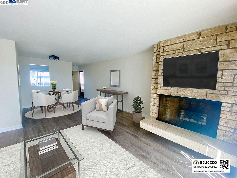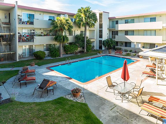 Feast your eyes on this upgraded condo boasting two bedrooms, two bathrooms two balconies and over $70,000 of chic upgrades! Enjoy your morning coffee with a south east facing view of the neighborhood and the SF Bay or the interior facing balcony overlooking the pool. Remodeled kitchen with white cabinets, stainless steel Whirlpool appliances, quartz counter top, full electrical wiring. Vinyl plank floors. Black doorknobs, hinges, and accents. Remodeled hallway bathroom with tiled floors, shower stall and glass door. One car car port with two extra storage areas. Two community laundry areas with low cost operation. Located across the street from Alameda Beach and with easy access to walking, running and biking trails. Nearby are top schools, South Shore shopping and Crown Beach. Sushi House, Trabocco, Trader Joe's, Safeway, Post Office, restaurants. Close to 880, the SF Bay Ferry terminal and AC Transbay lines. HOA fee is $687 month and owner is only responsible for electric and cable/Internet service. Short waiting list to rent out unit. Pet restrictions is two pets each under 35 pounds.