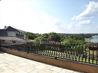 Combining stunning scenery & impressive design, this LT waterfront estate represents the best in luxury.You are greeted by spectacular double arched Cantera doors encased in glass at the entry.Not to be overshadowed by the wall of windows in the lvg room;that when opened bring the outdoors inside w ease.The redesigned interior of the home is graceful & serene allowing for many entertaining areas.Spend cool evenings relaxing by the outdoor fireplace overlooking the neg edge pool & the lake. The rounded staircase leads you to the master suite on the upper level giving way to privacy and wonderful lake and hill country views.Enjoy the fireplace as you soak in the jetted tub or place your exercise equipment in the open space and take in more views.All four remaining bedrooms with en suite baths are located on the main level separated by a smart living space allowing study nooks, storage closet and built in entertainment shelving. Other features include media room with full bar and study.