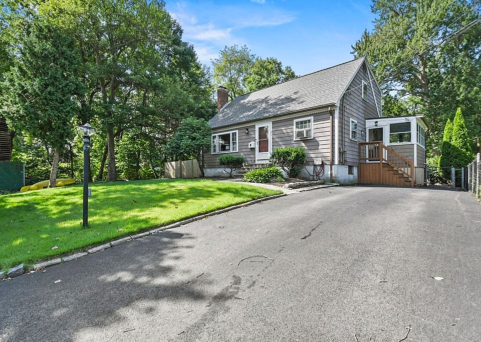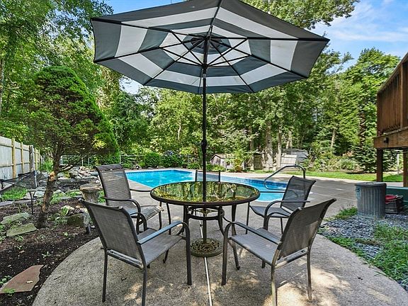 Great westside cape located privately and is the last house on a dead end street. Beautifully landscaped, cpmpletely fenced yard with an inground pool, cascading waterfall to a Koi Pond, circular outdoor fireplace, stone walls and decorative landscape lighting and shed. Mud room side door entry way to a front to back kitchen/dining room combo w/ built-in hutch & stone counters. First floor fireplaced living room with hardwood flooring, a bedroom/den with slider to rear deck and a full bathroom w/ ceramic tile shower and flooring. Three bedrooms upstairs including the main bedroom and another bathroom. Lower level has two finished rooms-one with a built-in bar w/ sink & refrigerator. Laundry room w/ washer & dryer included. Roof 2+ years-new interior paint-heat 6+ years. Excellent property!