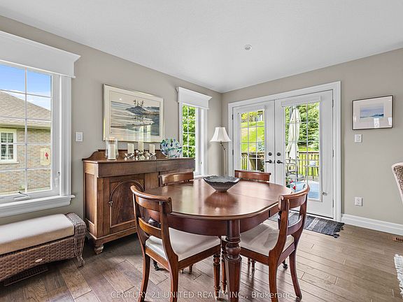 Welcome to this beautifully maintained end unit condo offering comfort, convenience and thoughtful upgrades throughout. Featuring 1+1 bedrooms and 3 bathrooms with lower level fully finished with plenty of storage and shelving. The bright and inviting kitchen with newer appliances is perfect for cooking and entertaining. A spacious living and dining area flows seamlessly for everyday living. The large principal bedroom boasts an ensuite with walk-in closet and even laundry hook-up for added convenience. This end unit enjoys extra privacy with additional trees planted by the home owners including pear, lilac and spruce creating a natural and serene setting for all to enjoy. With its meticulous upkeep, practical layout and thoughtful enhancements, this condo is truly a rare find.