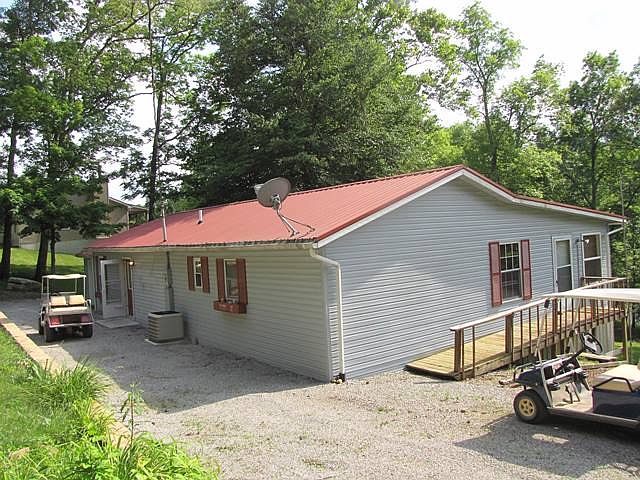 REDUCED!! Everyone would LOVE to have an easy slope to an existing dock along with 3 bedrooms, 2 baths and a sunroom that is heated with an entry to the lake side deck. This is what we call a REAL DEAL about to happen! This site built home has a metal roof and vinyl exterior which is a great low maintenance feature. Another sought after feature is the large living area PLUS the heated sun room. Not to worry, this house is large enough to accommodate your lake guests AND give great parking. A cart path on this property allows you to take Granny and Papaw to the lake in your golf cart. Now there is a REAL PLUS when the mature family members are included in the boating activities and can get there with EASE! PRICED for a fast offer and of course YOU will want to close quickly to begin your lake living FUN! Qualified buyers call Josh or “DO A DEAL WITH DOTTIE!” We ARE the REAL DEAL Rough River Lake Specialists making sure YOU have a chance to own the property YOU are dreaming of! STOP DREAMING and start SCREAMING…….” WE HAVE A LAKE HOUSE!” Shown by appointment so call Dottie or Josh BEFORE you see this one is SOLD!