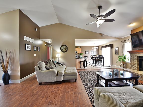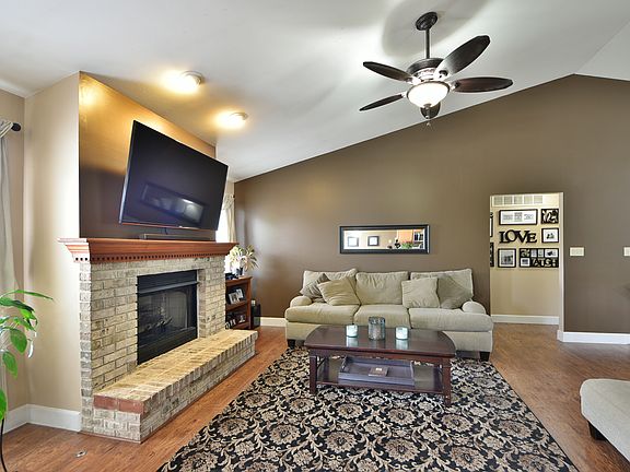 Manicured landscaping accents the curb appeal with this beautiful 4 bed/3 bath brick-front ranch w/newer Architectural roof. A covered front porch welcomes you into the entry foyer where a soaring vaulted ceiling rises above the large great rm w/brick-surround fireplace. The large formal dining rm allows ample space to entertain in style. A bright & inviting kitchen features granite, custom cabinetry, brkfst bar & SS appliances while the adjacent breakfast rm has sliding glass door to the New deck(5/16!). Newer main flr laundry has cabs. Retire in true comfort to the elegant master ste offering a deep coffered ceiling, large walk-in closet & full bath w/double vanity, lounging tub & separate shwr. Awesome fully finished lower level w/brand new carpet, paint & woodwork (to be completed by 6/10/16 or sooner) provides addl living space with a 4th bdrm, half bath, private den, huge family room, rec room w/wetbar & slider to the patio. 2C garage & level fenced yard! This home is a Must See!