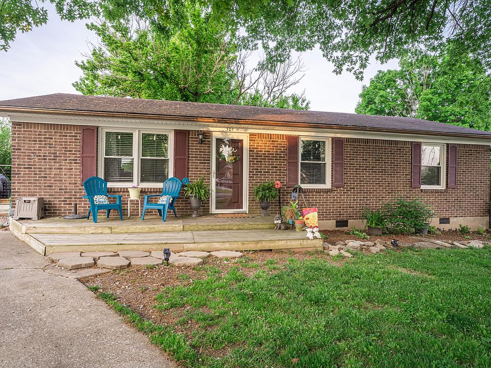 This home has so much to offer its next owner! Entertaining in the huge backyard will be lots of fun! Enjoy the mature tree that provides shading while playing games, grilling out, throwing balls or just relaxing. The double portable carport is great for parking cars, lawn mowers or storing garden tools. Yes, the yard is large enough for that garden! There is also a storage building for additional storage. The front lawn boasts shade and is beautifully landscaped. Grab your favorite beverage and take it to the front deck to cool off after a hot day of work. Enter the living room to see the beautiful laminate flooring and double window allowing natural lighting or grab a book and read by the electric fireplace. The kitchen has a large cut through window to the living room which creates an open atmosphere and makes entertaining very easy. The white cabinets, and laminate flooring are a nice feature of the kitchen. All kitchen appliances remain with the home. The three bedrooms are spacious with ample closet space. You also have great access to the hall bath from the bedrooms. You don't want to miss this one. Call today for a showing!