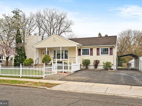 Greeted by an inviting white picket fence, this rancher is much larger than it appears - boasting 3 bedrooms, 2 full bathrooms and 1,596 sq ft. Enter into the spacious living room w/ hardwood flooring w/ decorative inlay, a bay window that allows natural light to shine through and a charming white brick fireplace. Updated kitchen w/ granite countertops, tile backsplash and stainless steel appliances. Beyond the kitchen is a large sunroom with floor-to-ceiling windows overlooking the pool. Primary bedroom w/ two closets and a full ensuite bathroom. Two more bedrooms and a second full bathroom complete the main floor. Full basement w/ laundry and plenty of room for storage. Backyard w/ covered patio overlooking a large built-in pool. Two sheds; one for storage and another that houses pool mechanisms & equipment. Large driveway w/ carport. Centrally located nearby shopping, grocery & award winning dining. Plus major corridors such as Route 130, Route 206, I-95, the New Jersey Turnpike and the Bordentown River Line Light Rail Station. Don’t miss your opportunity to see why everyone raves about Bordentown Township!