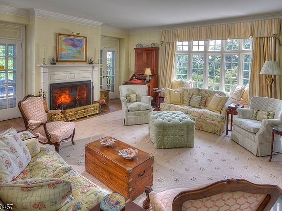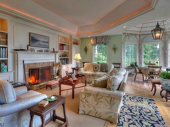 Visit a welcoming and charming French style cottage on the Bernardsville mountain with long views to the horizon. Four bedrooms, 3 1/2 baths, with a 5th bedroom if needed (5 bedroom verified septic. Formal black and white marble foyer, step-down living room with gas fireplace, formal dining room, new kitchen in 2014 with high-end appliances, opening to family room with wood burning fireplace and and circular eating nook/plant room. Large partially covered flagstone patio offers private views and outdoor dining. Bedroom configuration allows for nanny or in-law suite. Set on five very private acres with lovely flowering perennial gardens and raised vegetable beds.