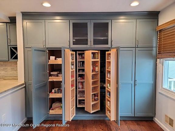 UNIQUE 4 bedrm 2 bath Ranch checks everything on your wish list: corner lot, tastefully renovated bath, gorgeous kitchen with teal cabinets loaded with pull outs, glass doors, floor to ceiling pantry, wine rack, marble backsplash, quartz counters, stainless appliance package. Master Suite with private side entrance offers a large sitting room, walk-in closet, with brand new master bath, matching gray vanities and shower stall. Perfect set-up for MOTHER DAUGHTER too! Full unfinished basement and concrete crawlspace for more storage. Composite deck. Fenced-in vinyl backyard. Close to Shark River Park, Beach and Parkway. You've got to see this to appreciate!