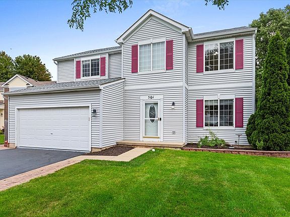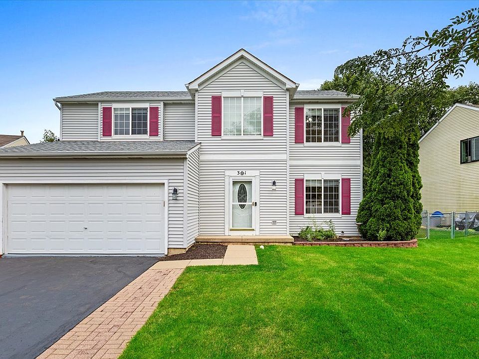 Move-in ready with NEW kitchen appliances, quartz counters, and no HOA! This beautiful 1-owner single-family home offers 3 spacious bedrooms + loft, 2.5 baths, and a full unfinished basement ready for your ideas. The primary suite provides a private en-suite bath and walk-in closet, designed for everyday comfort. The kitchen is the heart of the home, featuring brand-new stainless steel appliances, quartz countertops, and a walk-in pantry. Convenient second-floor laundry includes a new washer and dryer. Upgrades throughout include fresh paint, custom brick driveway extensions for extra parking, two water heaters, and a water softener. The heated 2-car garage is fully finished with painted flooring and two Tesla charging stations. Roof, siding, and water heaters are only 3 years old-offering peace of mind. Enjoy the outdoors in your fenced backyard with a brick patio, fruit trees, and raised garden beds-perfect for entertaining or homegrown produce. With plenty of natural light, a versatile loft, and an ideal location just minutes from Prairie Ridge Drive Park, 5 minutes from Historic Woodstock Square, and close to highly rated schools, this home truly has it all.
