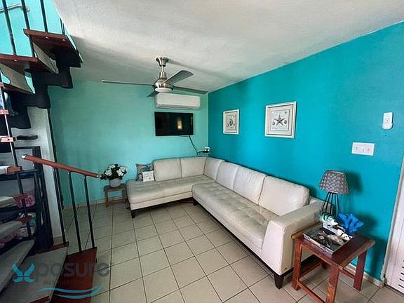 Condominio Table Rock in Aguada, PR. This is an amazing Penthouse beachfront ocean view condo unit where you can appreciate the best sunsets you will ever see in Puerto Rico. Full privacy, facing west. This unit is completely equipped with new appliances, and it is furnished. It has 3 bedrooms and 2 bathrooms, a big terrace with ocean view, outdoor sink, and it is perfect for having outdoor gatherings, reading or just relaxing watching the beautiful ocean. The layout of the condo is very comfortable as it has two stories. On the first floor you have a kitchen with an ocean view, dining room with ocean view as well, living room, guest bathroom completely remodeled, living room, and two bedrooms with AC units and fans. The second floor has a master bedroom with ocean view on the right side and mountain view on the left side, bathroom and terrace. The terrace has an ocean view and mountain view as well..