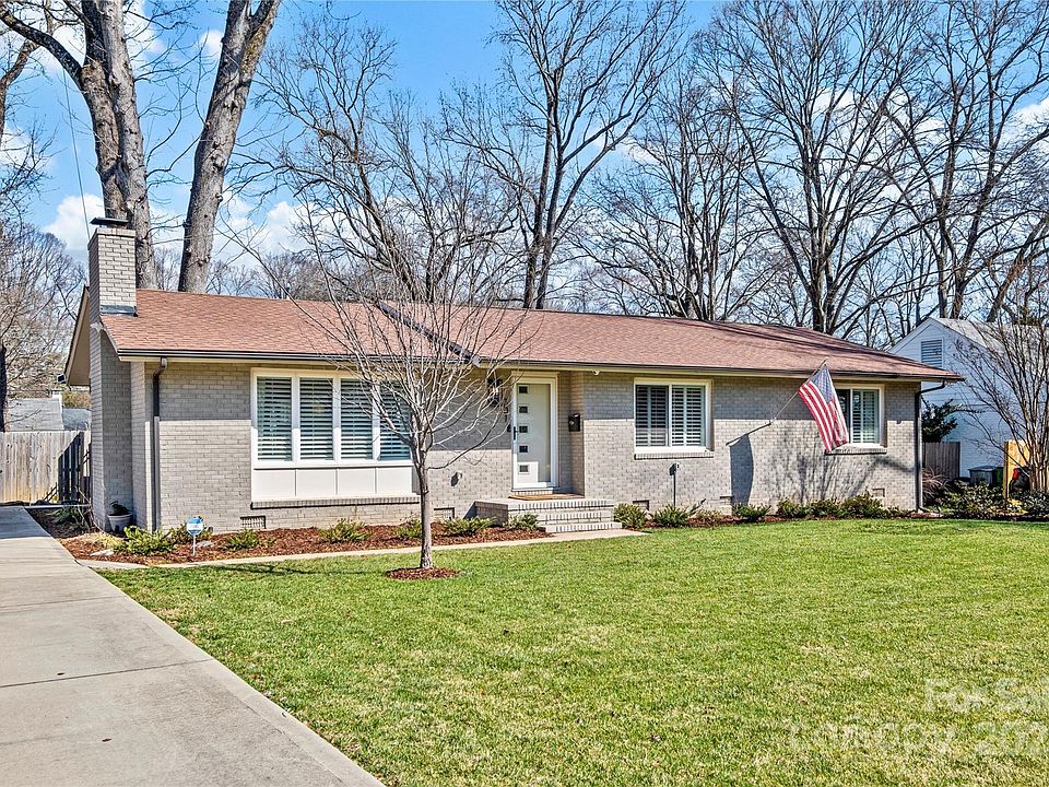 Absolutely pristine and renovated throughout, this 3 bed/2 bath painted brick ranch in popular Madison Park is sure to impress! A desirable open floorplan and an expansive great room with vaulted ceilings will greet you upon arrival. Updated kitchen features white painted cabinetry, center island, granite countertops and stainless steel appliances. Kitchen opens to a sunny dining area or additional living space. Spacious primary suite features an additional office/sitting room, multiple closets and a beautifully renovated bathroom with dual vanity and walk-in shower. Two additional secondary bedrooms both with hardwood flooring and plantation shutters. Great outdoor living with an expansive deck/patio that overloooks the private, fenced in back yard. Cute shed offers abundant storage. Just minutes from Uptown Charlotte or Southpark and in close proximity to the light rail and booming Southend you could not ask for a better location. Do not miss this one of a kind Madison Park home!