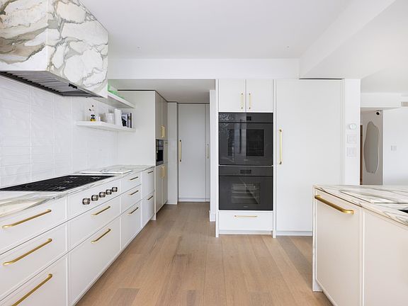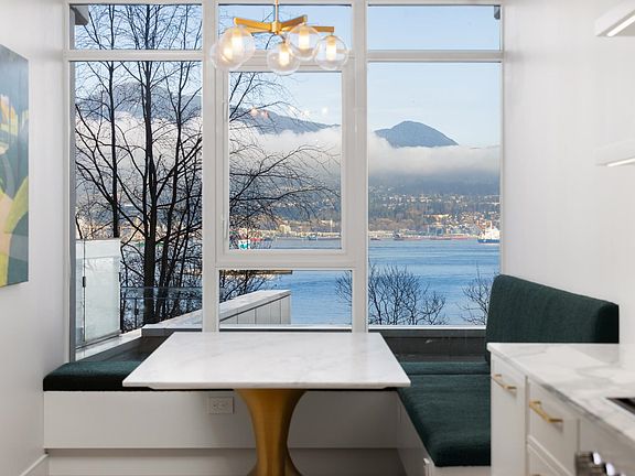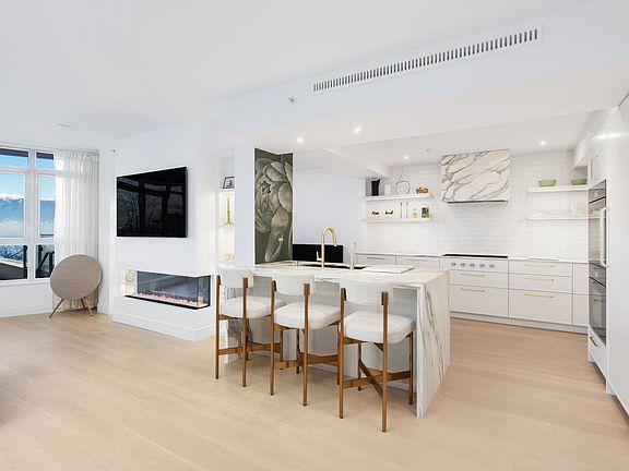 EPITOME OF LUXURY AND SOPHISTICATION, this once-in-a-lifetime residence is worthy of magazine covers. This world-class 3 bedroom / 3 full bathroom home has undergone one of the most remarkable renovations. Spanning 2905 sf, featuring Calcutta Retro marble throughout the kitchen and bar, integrated automatic Miele appliances, a custom pantry, and Bocci 22 series electrical, flows effortlessly into the sun-bathed living and dining areas laid with engineered oak hardwood floors. Private primary suite boasts a walk-in closet, fireplace, and a stunning five-piece marble ensuite with in-floor heating. The pièce de résistance… two expansive patios offering 1,250 sq ft of outdoor living with breathtaking water, mountain, and city views. Fully automated with a Control 4 system. 3 parking + storage.