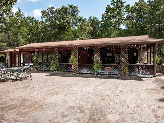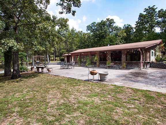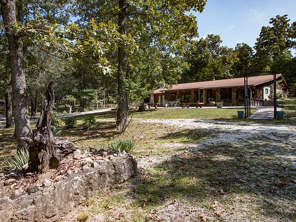 Talk about one of a kind!! One owner home built the way he wanted. One level - partial berm for affordable heating and cooling. So private and 40 awesome acres just minutes from Bull Shoals Lake. Trails and wet weather creek. A real slice of Heaven! Approximately 15 miles from Branson and the best part - it's surrounded by 1100 pristine acres owned by Missouri Conservation Commission. Unspoiled. Home has such character: 3 BD, 2 BA and a huge covered patio. Has big workshop and garage. Check out the insulated storm shelter. Private well too. Hunter's paradise for sure. Home is move in ready.