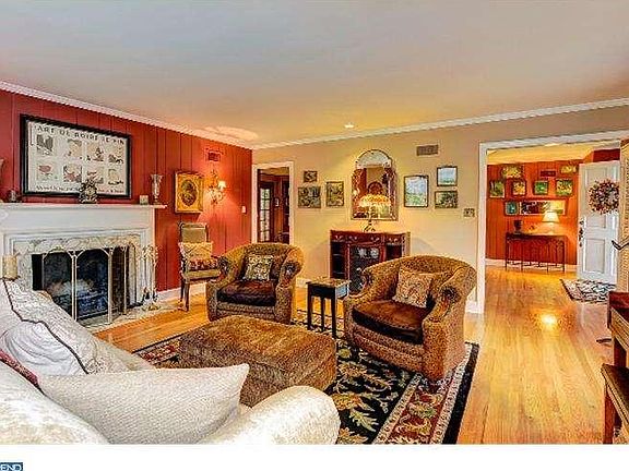 Stunning, distinctive 4 bed/3.2 bath cape cod is filled with fine architectural details including custom painted, curved wrought iron staircase, pocket-doors, hardwood floors, crown molding, cedar-lined window seat, custom mail drop, laundry chute, numerous built-ins, and a "secret" second floor room as well! This well-appointed home has been impeccably renovated and is truly move-in ready. The formal living room boasts a wood burning fireplace, the elegant dining room features a chair rail and custom painted ceiling, the inviting family room has a gorgeous brazilian cherry wood desk and built-ins, the bright kitchen offers granite countertops, tile backsplash and custom cabinetry, and the enclosed porch with french doors can be used year-round! The first floor also hosts the fabulous master bedroom suite with a beautiful bathroom and closets galore. The second floors features a large en suite bedroom with two built-in desks and shelving and a hidden playroom or office cleverly tucked away. The third bedroom also has it's own bath and entrance to the roof top deck. The fourth bedroom with plenty of storage area completes the second floor. The finished basement with a gas fireplace and private outside entrance allows for countless possibilities such as an in-law suite and plays host to a home theatre, two sided wet bar, office, workout area, workshop, powder room and additional storage room. The first floor laundry/mudroom, two car turned garage with an additional storage room, are not to be missed. Conveniently located, this lovely home on over one-half acre sits high on it's lot allowing for amazing views of the neighboring county parkland and the duPont Country Club Golf Course. A must see!