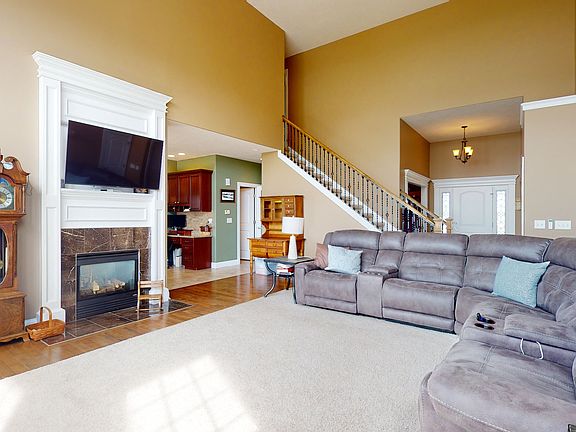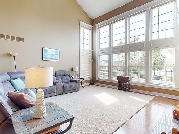 Don't miss this exceptional home, located on an extra-deep lakefront lot with in-ground pool in Mahomet's popular Country Ridge Subdivision! A foyer with 11-foot ceilings welcomes visitors at the front door. The formal dining room sits just off the foyer, featuring hardwood floors, tray ceiling with multistage crown molding, and raised trim wainscot. A wall of windows overlooks the front yard. The two-story great room is the floor plan's centerpiece, boasting hardwood floors, two stories of windows facing west, south, and east, and a high efficiency direct vent two-way gas fireplace that also faces the kitchen. The first floor bedroom suite consists of a generously sized bedroom with 10-foot tray ceiling, two full-length windows, luxurious bath with double vanities, corner tub, separate walk-in shower, and large walk-in closet. The kitchen features cheryr cabinets, granite counters, tile backsplash, and a full complement of updated stainless steel appliances. The walk-in laundry room sits between the kitchen and the garage, featuring a sink, cabinets, and a coat closet. The 2nd floor features three more bedrooms and a shared hall bath with double vanities. The finished basement was just significantly remodeled in the last year, including new kitchen cabinets, microwave, disposal, paint in the kitchen and family room, and all new carpet. The fenced backyard overlooks the lake, and there is an in-ground pool. See 3D virtual tour and HD photo gallery.