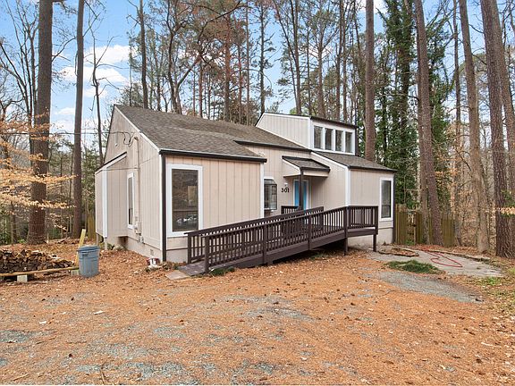Welcome to your updated contemporary home. This open concept home will have you in awe with its stunning wooded views from every room. There is plenty of flex space for those that work from home or need that a place to sit and meditate. This 2 bedroom can live as if it is a 4 bedroom with its downstairs office and the open and airy loft atop the spiral staircase. Enjoy evenings with family and friends out on the back deck for years to come. Wired 10x16 workshop included. Many of the appliances and major systems are recently replaced and updated. Located only 6 miles from UNC and downtown Chapel Hill. Only a 5-min walk to connect with over 26 miles of hiking and bike trail at Briar Chapel. Start creating memories today in your new home before it is gone!