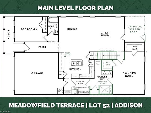 Welcome to 301 Creekside Terrace, situated within the upcoming Meadowfield Terrace, a low-maintenance community situated on 50 acres of woodland. Presenting the Addison floor plan: 1726 sqft on the main level, 341 on the upper level. 3 bedrooms (Primary on Main), 3 full baths, Storage Area, an attached front-load 2-car garage, and an open concept that seamlessly connects the kitchen, dining room & great room. Features include covered front porch, screened-in back porch, laminate hardwood in main living areas, carpet in bedrooms, and tile flooring in the bathrooms & laundry room. The kitchen showcases a large island with a pantry. The Owner's Suite includes his & her closets, with an ensuite accessible bath. Estimated completion timeframe is Aug 2024. Up to $10,000 in incentives if buyer uses preferred lender! Prefer different design options to what this unit offers? Choose your own lot in Meadowfield Terrace, and customize your own Addison or Finley floor plan! Multiple lots available!