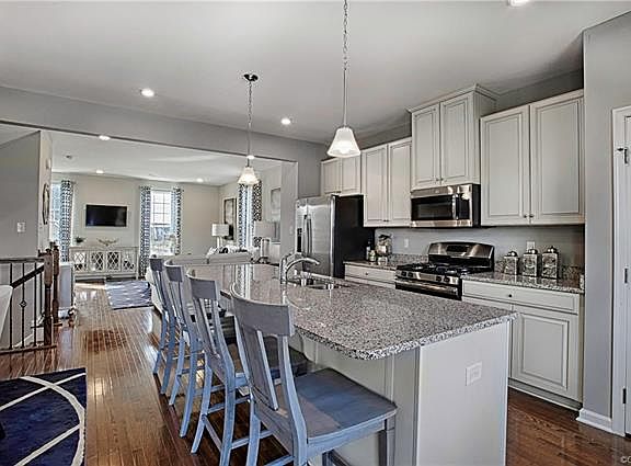 In this Charter Colony community, just off Midlothian Turnpike, you can own a spacious, maintenance-free townhome while remaining connected to friends and favorite hotspots Downtown. Here you don’t have to leave the community for fun, because you can relax with neighbors in the pool, walk or bike the trails to the picnic areas, hang out in the clubhouse or grab fresh produce from the community garden.Lots of living space and an abundance of natural light make the Strauss a townhome that feels like a single-family home. On the main level, a huge country kitchen, with an optional island, provides plenty of room for cooking and entertaining and opens to a large living room through an arched breakfast bar. The upstairs has lots of opportunities to upgrade so that you can create a home that fits your lifestyle. This home features a Finished Basement Rec Room.