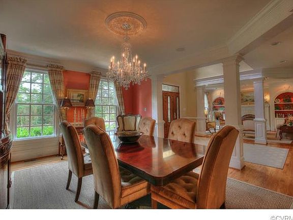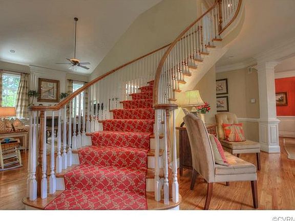 Location,Location, Location - Rare opportunity to own a beautifully maintained home, located on a private road overlooking the 18th hole of Country Club of Virginia's Tuckahoe Creek Golf Course. Home sits on 2.29 wooded acres. Fenced area does not reflect the total property line. Open floor plan with grand, circular staircase, family room with two story fireplace, formal living room with fireplace, spacious dining room, large kitchen featuring custom cabinets and breakfast room, covered rear porch leading to bluestone patio. Second floor offers large master suite including sitting area and fireplace, four additional bedrooms and two full baths. The third floor offers an additional space suitable for TV, exercise or playroom. Rear stairs from kitchen to second floor.