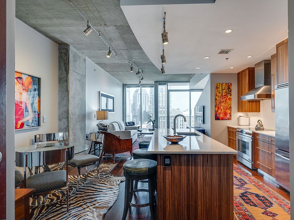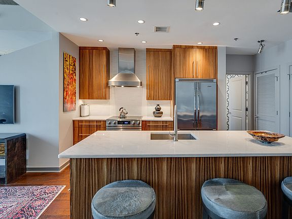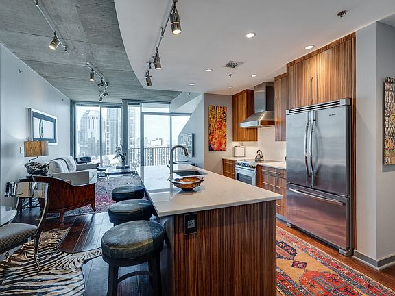 RARELY AVAILABLE '04 unit with unobstructed views overlooking the Symphony Center & AT&T building. Never has there been an Encore with this level of upgraded finishes: New flooring throughout, Rutt Zebrawood custom cabinets in kitchen, white marble countertops, under counter lighting, all new matching Decor appliances, tile backsplash, new lighting throughout, dimmer switches, white/black marble in bathroom, glass shower door, walnut wall hung vanity and all new bath fixtures. You truly won't believe the views!!
