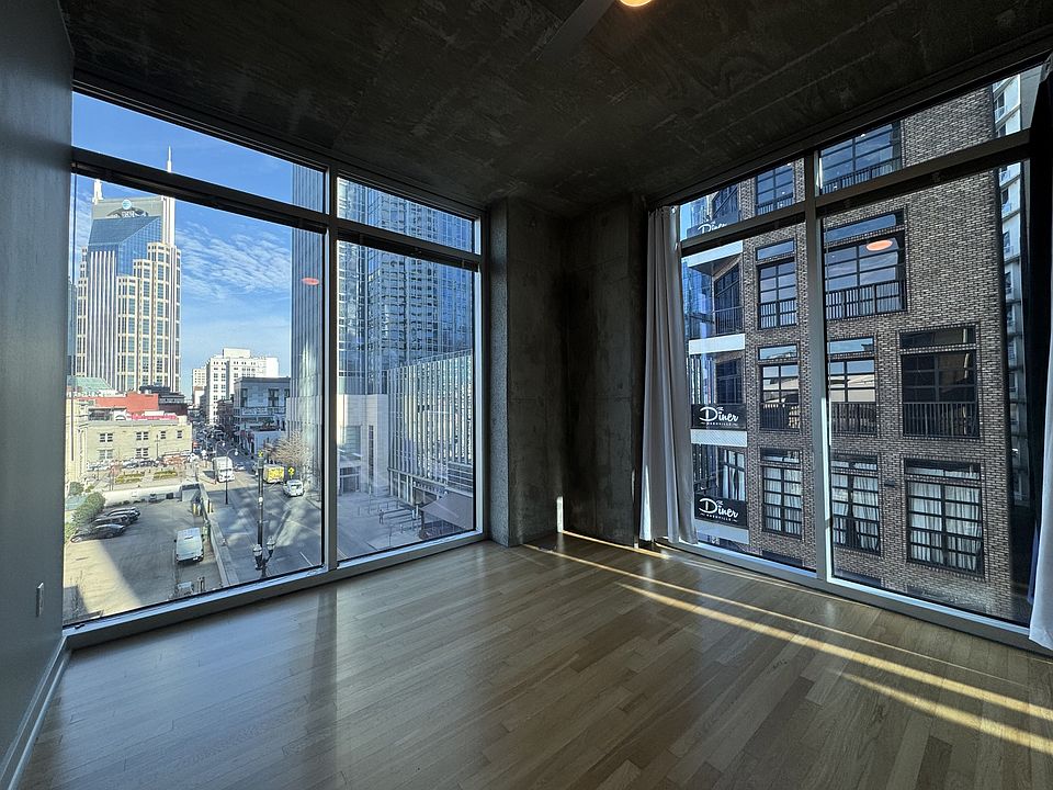 Prepare to be amazed by this exclusive corner unit overlooking Nashville 1/1 prime urban condo, a true rarity offering an expansive 920 sqft of unparalleled premium downtown living space. Bathed in natural light from gleaming floor-to-ceiling windows, this gem showcases exquisite hardwoods throughout & includes the convenience of rare assigned parking on the same level as the condo. Indulge in the epitome of urban luxury with access to a stunning rooftop terrace boasting a resort-like pool, as well as a captivating Clubroom complete with a fully equipped kitchen. Your comfort is assured with round-the-clock concierge service, elevating your lifestyle to new heights. Discover the perfect balance between opulence and affordability in this remarkable urban haven. Don't miss out on this extraordinary opportunity for sophisticated city living at its finest. Utilities, including internet, are included in the rent. Full-size Murphy bed included.