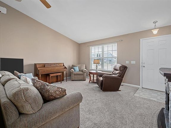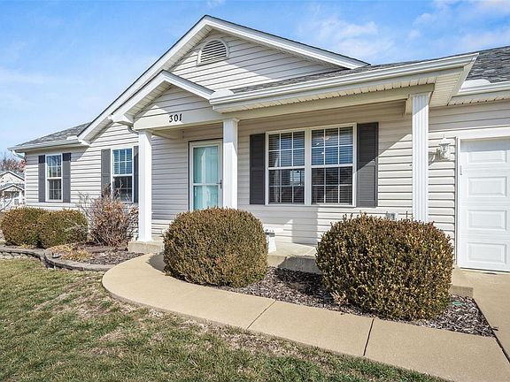 A must see! This home is clean and charming with a great lot! Features include open floor plan, vaulted great room with plant shelf, spacious vaulted kitchen with white cabinets, stainless steel appliances and a sliding door out to large patio and huge shed! There is a main floor master suite with private bath, 2 addl. bedrooms, full bath and a large main floor laundry you will love! The exterior boasts upgrades in 2024 Roof, garage door, gutters, downspouts, shutters, siding, 2 windows all per invoice in 2024 provided with seller’s disclosure. Additional updates include some interior fresh paint, front storm door, garbage disposal, all wired smoke detectors! Conveniently located to Highways I 70 or 40/61 Don’t miss this one!