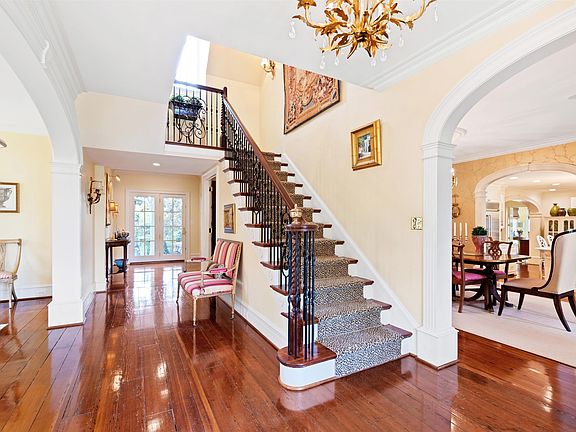 Elegant perfection best describes this immaculate traditional Cape Cod 1.5 story in desirable Drewry Hills. Built in 1963, the home was meticulously renovated in 2009 to preserve the original charm, but make it suitable for today's modern lifestyle with the addition of the main-level primary suite and family room opening from kitchen. The covered front porch welcomes you inside to formal living and dining rooms adjoining the spacious foyer. You will notice stunning random width heart pine floors, gracious 9 to 10-foot ceilings, intricate moldings, oversized arched doorways and 5 fireplaces. The dream kitchen features marble countertops, Dacor gas cooktop, double wall ovens, and a large work island. The bedrooms upstairs are en-suite and one has an adjoining room for an office, gym or play space. The finished basement features handsome heart pine wall paneling, brick floors, wooden beams, decorative fireplace, and a bar with a wine cooler. Off the kitchen is a mudroom with desk area. The backyard is a fenced, private haven including a covered porch with Bluestone slate tile, brick patio and outdoor fireplace.