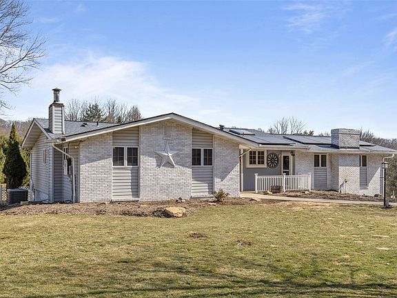 Nestled in a peaceful country setting, this 3-bed, 2.5-bath ranch sits on nearly 2.5 acres with a stocked pond and mature trees. The oversized family room featuring a gas fireplace, offers plenty of space to relax, while the updated kitchen boasts abundant natural light, beautiful skylights, vaulted ceilings, ample counter space, and an eat-in area that opens to an expansive covered deck. The large master suite features a full ensuite bath and a room-sized walk-in closet, with private deck access overlooking the pond and back yard. Two more generous-sized bedrooms and a full bath complete the main level. The finished lower level is perfect for entertaining, featuring a family room with a wet bar and pellet stove, plus a bonus room with a walk-in closet—ideal as a 4th bedroom or home office and updated half bathroom. Walk out to the back patio and pool area for even more outdoor enjoyment. Don’t miss this stunning retreat! Close to all highways & amenities of Zelienople/Cranberry Twp.