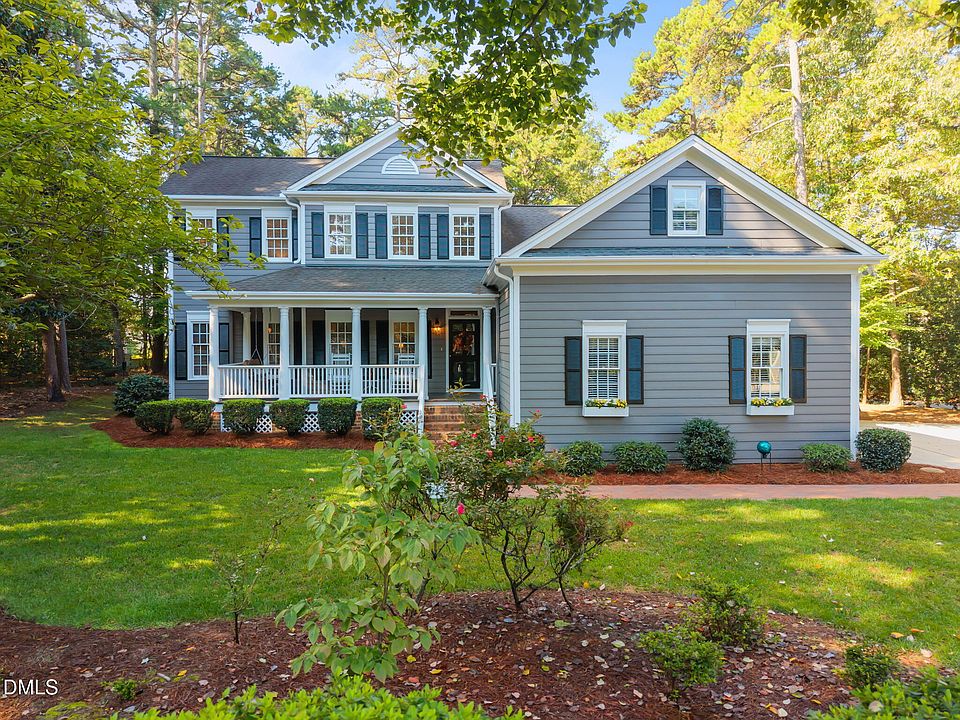 Secluded, elegant, open, airy floor plan in sought after N. Raleigh Bent Tree. 1st floor master with freestanding tub. Gourmet Kitchen with vaulted Breakfast. Vaulted Family Room open to large Loft. Large rocking chair front porch, screened back porch, Irrigation, Security System. Exterior paint 2025. Tennis and Pool included with HOA. Enjoy walking trails and convenience to grocery, shops, parks, schools, and dining.